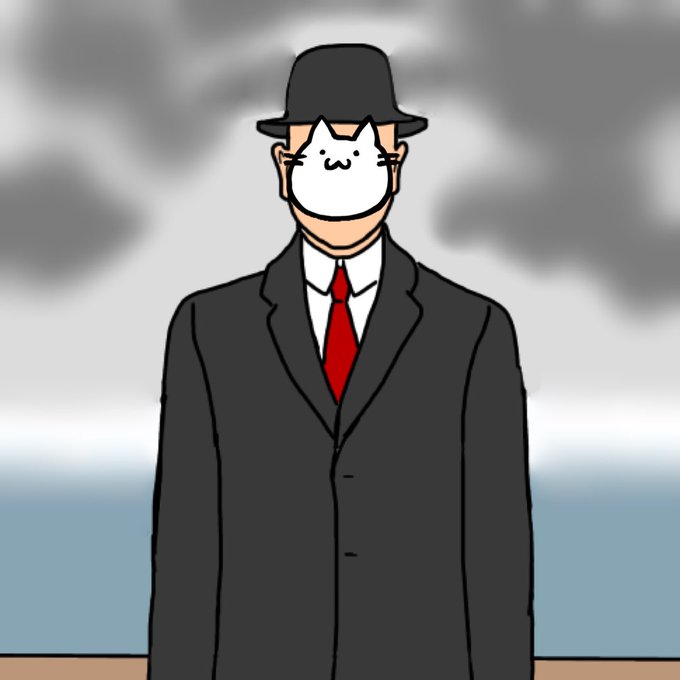 ルネ・マグリット「人の子」のりんごのように人の顔を隠す猫。 #イラスト #ネコ #マグリット #ゆるいイラスト