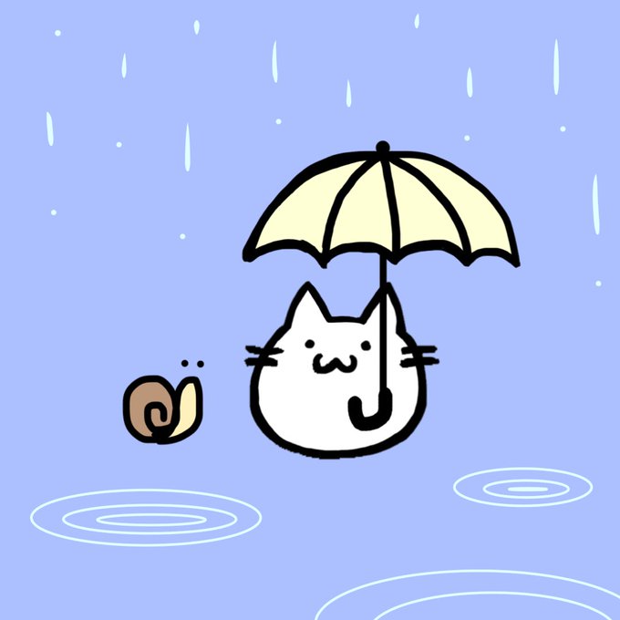 最近は雨が多いですね。 #イラスト #ネコ #雨 #ゆるいイラスト