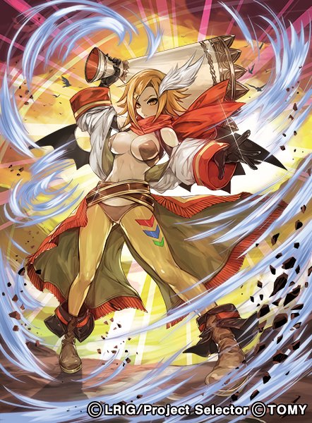 【宣伝】ラストクロニクル「陽光編IV」本日発売でした~自分は今回「炎拳美将 ミュラ」「クレイタランサー」「風羽の大精霊鳥」担当してますよよろしくねっ✌️ https://t.co/jTQKyvvpon #TCG #ラスクロ