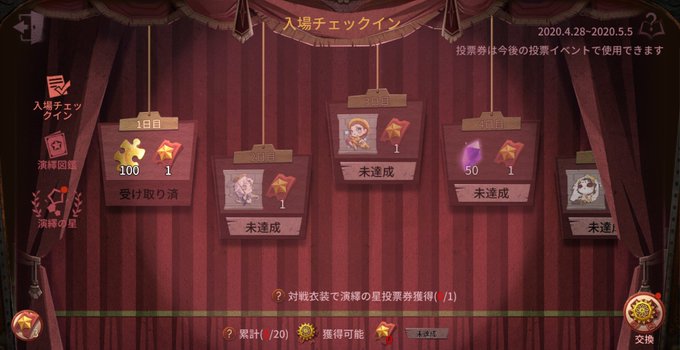 3.試合中、演繹衣装を身に着けたキャラがいたら、投票券1枚を獲得できる(毎日1枚)