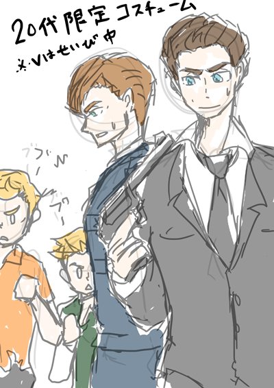 暑い。水遊びしたい。そんな落書き。実写版のメンツのカラー資料がないというか適当に書きすぎた。
