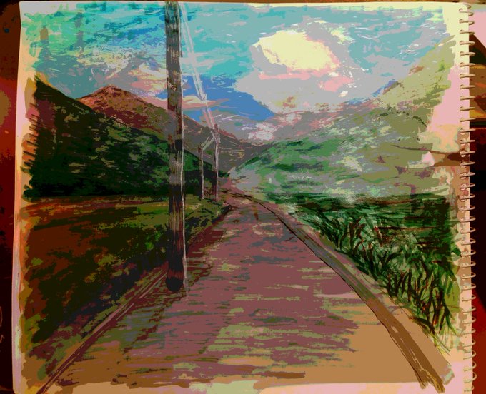 お題『通学路』アナログにフィルターかけたものも、一緒に。 #背景版深夜の真剣お絵描き60分一本勝負