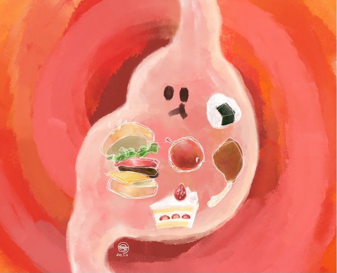 太った胃 キャパ大きいのでいっぱい食べます。 #イラスト好きさんと繋がりたい #イラスト #満腹