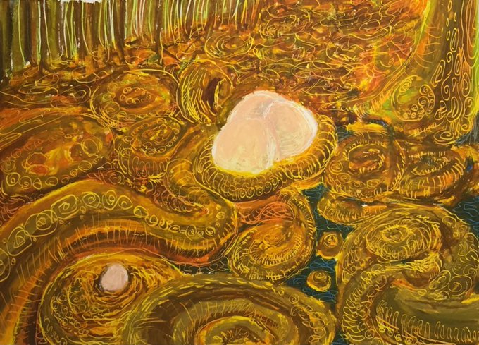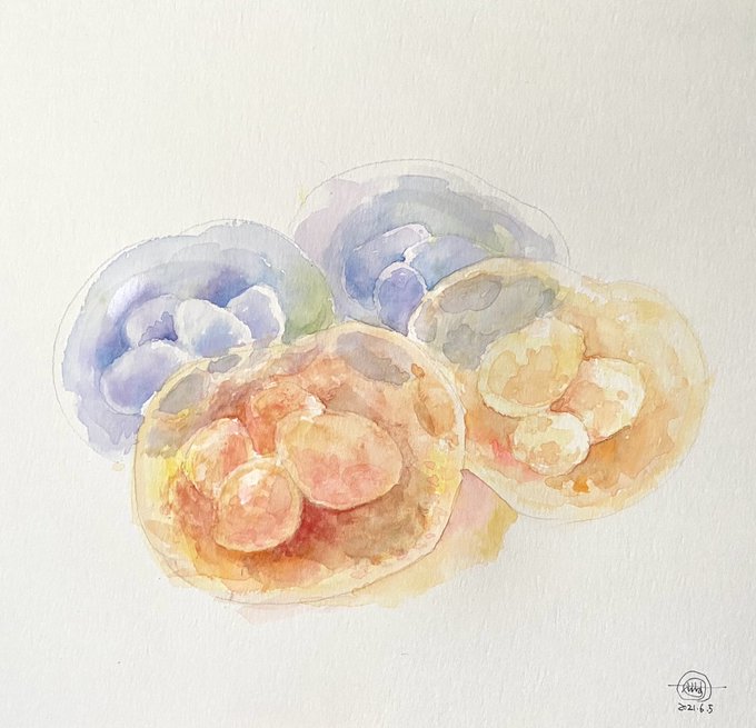 たまご 両生類のたまご、ゼリーはとてもゆるそうだ。 生みの親の設定は後日😉 #透明水彩 #どこかの誰かに刺さればそれで良い #私の絵柄が性癖に刺さる人に届いてほしい #私の絵柄が好みって人にフォローされたい #卵