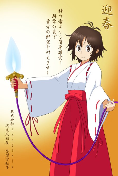 新春描き初め巫女粒子さん。 #オリジナル #笛留実粒子