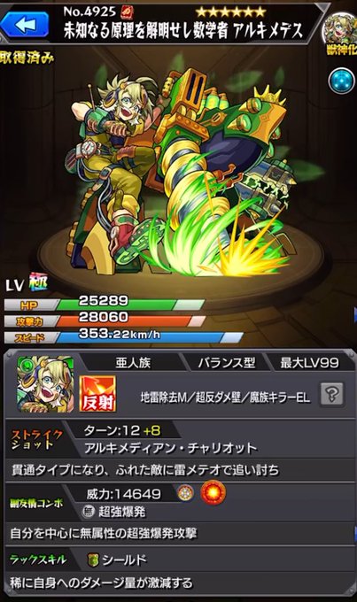 アルキメデス獣神化のスアビはマジぶっ壊れ。チップソーは多段ヒットするだけにノマクエも楽になりそう。 超究極の戸愚呂を2回クリアした時はアルキメデス2体持ちだったけど今は艦隊組めるしまた幽遊白書のコラボ来たら試してみたい。
