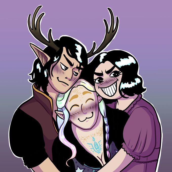 I found this amazing pose meme on Tumblr for ot3s and I just had to use it for Orelia, her eidolon and her girlfriend. The energy is just right :D