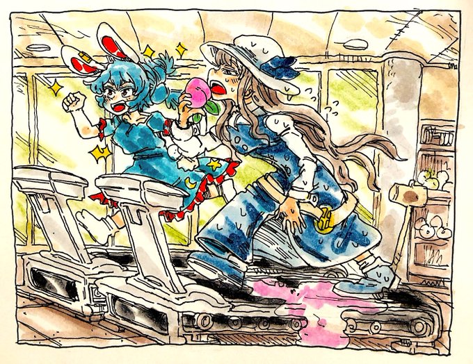 穣子と布都。 河をくだるふたり。 #深夜の真剣お絵描き60分一本勝負