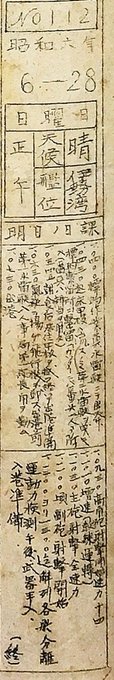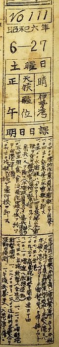 軍艦伊勢 艦内新聞 No.111 昭和6年6月27日 明日日課が大量にあります。 「職務に斃る覚悟」。 道歌。