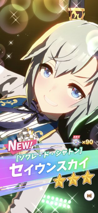 10連試しにやったら来たよ😃セイウンスカイ持ってなかったから助かる✌️カイチョーのカードも来たよカッコイイね。