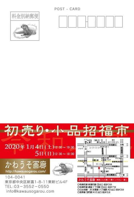 展示のお知らせです。明後日4日5日はかわうそ画廊さんにて小品を展示させていただきます。 皆様のお越しをお待ちしております。