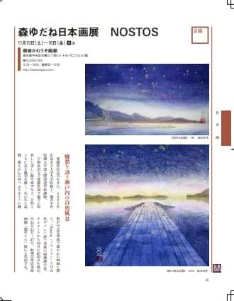 10月20日発売の月刊美術さんに11月10日からの個展について掲載していただきました。愛媛県南予、明浜の風景です。暮れゆく海岸の表情に、穏やかでありながら強さを秘めたある人を想いつつ描きました。銀座かわうそ画廊さんでの個展にて様々な想いを込めた日本画をお見せできればと思います。
