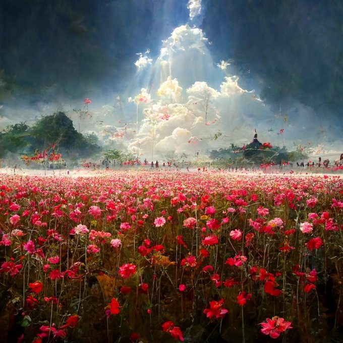 #midjourney คีย์เวิร์ดสงครามสวรรค์กลางทุ่งดอกไม้ โคตรสวย ตกงานจ้ะ