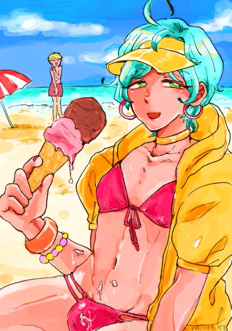 久しぶりに会うフォロワーが奏汰くんとなるちゃん推しなので描きました。衣装がわからないから三角ビキニにしました(?)