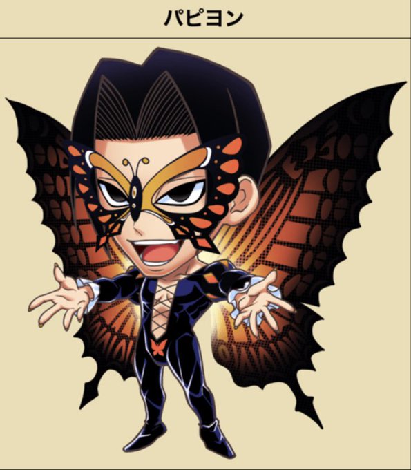 パピヨン、紫のイメージが強いんですけど、オレンジは超人パピヨンになった後の色だったかなぁ(´ー`) #ジャンプチ