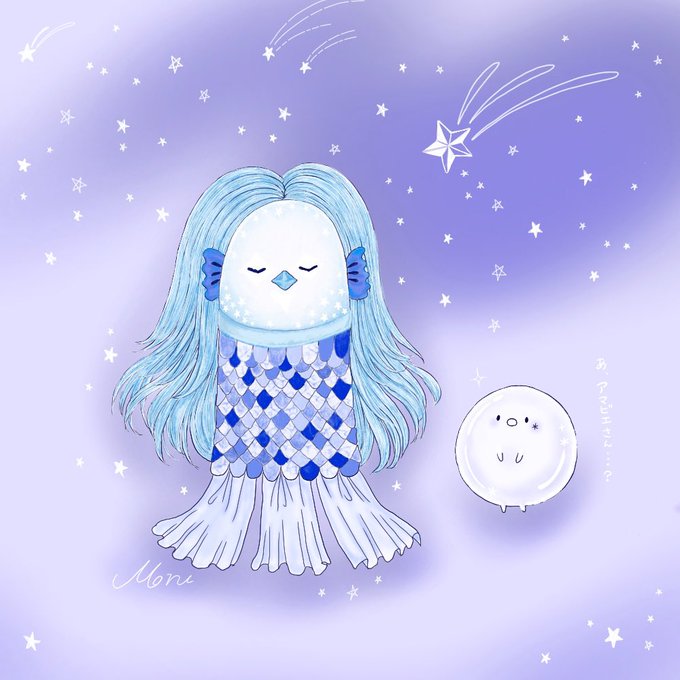 やっと描いてみた、アマビエさん(´°` ) #アマビエ #白玉くん #イラスト好きさんと繋がりたい