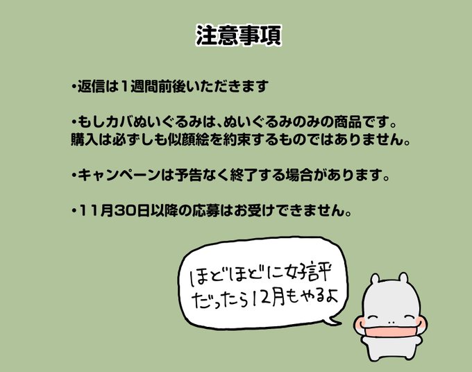 ※このキャンペーンは、もしカバぬいぐるみを購入された方向けとなっております🙇♂️