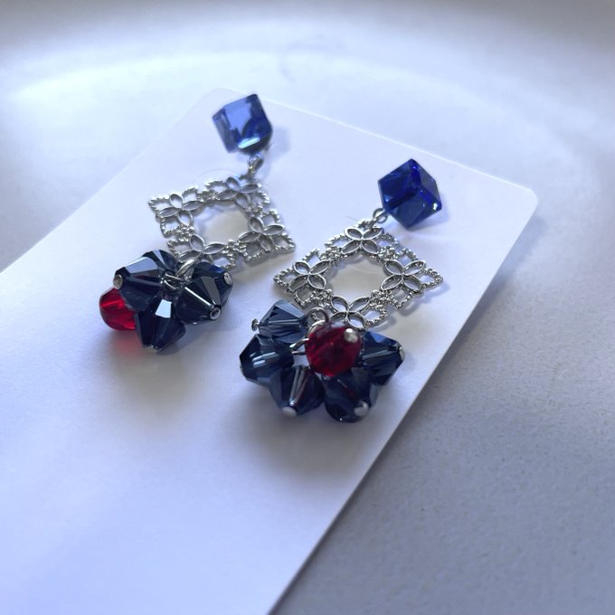さくちゃんさん(@29onigirimaru )にイメージアクセサリーと日向くんピアスを作っていただきました…!!!!!めちゃくちゃ素敵なので自慢させてください🥰🥰 そして嬉しすぎたので日向くんに日向くんピアスつけてもらった🤗
