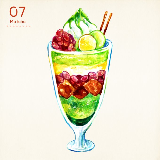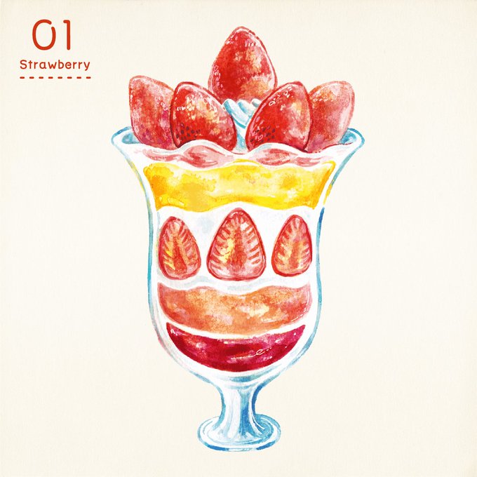 06. 桃パフェ #食べ物イラスト #パフェ