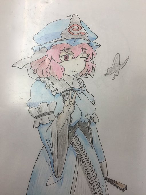 幽々子様のイラスト描いてみました!自絵です。 #西行寺幽々子 #東方project #東方 #イラスト