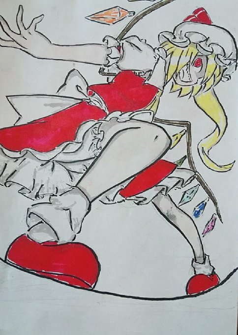 パースをキツくしたイラストの練習! 戦闘中のフランドール・スカーレット描いてみた! #東方project #東方 #イラスト #フランドール・スカーレット