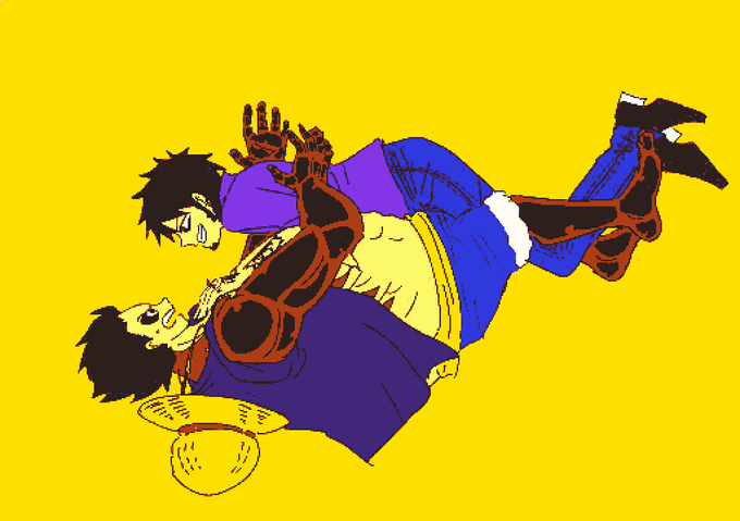 これヘッダーのやつ、ドフコラロ学パロの表紙にしようと思ってたけど多分もう描かないので上げる…。チェチェ・チェック・ワンツー!っていうボカロ曲のトレスでした~(清純過激派女子高生