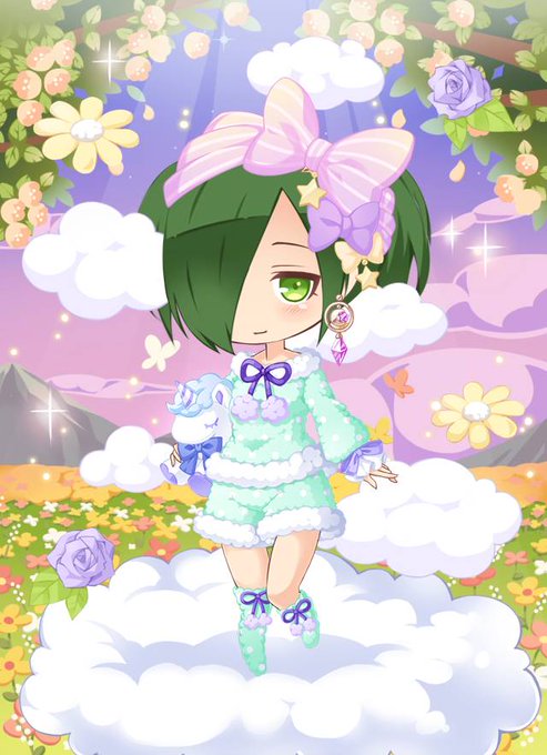 5人目お迎えしました ゴデチアちゃんです(はじめは赤髪にする予定だったから赤い花を選んでしまった!) くるくる〜