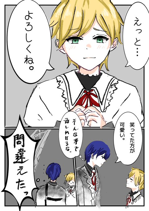 ニゴカイとニゴレンの初対面漫画4ページ 微かに🍌🍨🍌 ツンツンの数だけデレはある(?) #Prsk_FA #ニゴカイ