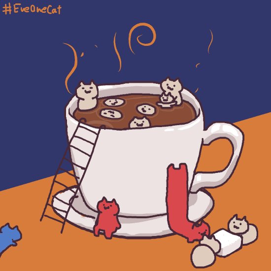「Coffee Bath!」(by @motions_cat)#motiongnyaphics #EveOneCat