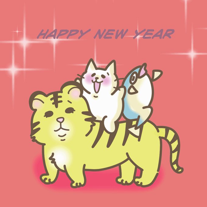 Happy New Year!🐯💕 今年もちびちびぷるぷるイラスト描いていきますのでよろしくお願い致します!🐱🐟💕 #イラスト