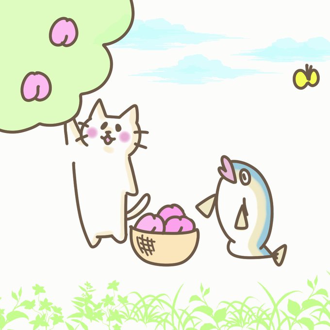 ひな祭りは桃の節句!🐱🐟💕 桃をもぎもぎ食べ放題まつり!🍑🍑🍑 #イラスト #アニメーション #雛祭り #ブリ #猫