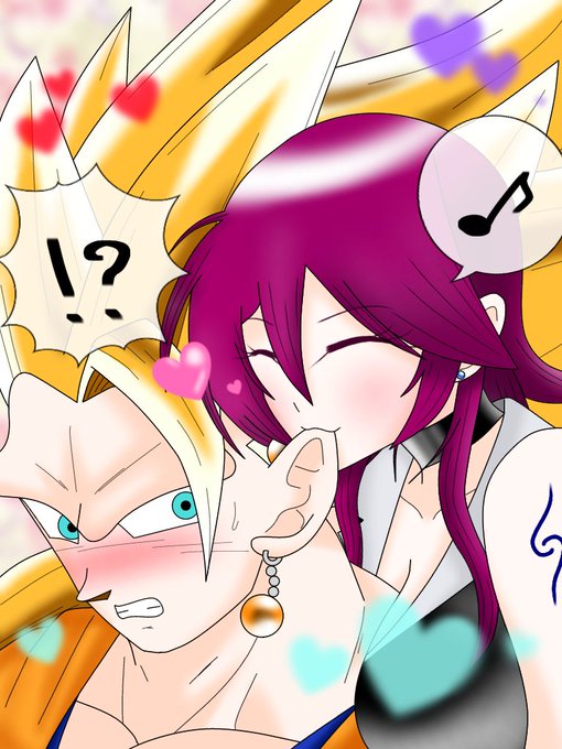 カカさんにイタズラするエーデルちゃん 🍷「カカロットさん〜♪あむっ♪」 🥕「…なっ!?エ、エーデル…!?////」