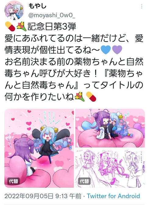 お名前決まる前の薬物ちゃんと自然毒ちゃん呼びが大好き!『薬物ちゃんと自然毒ちゃん』ってタイトルの何かを作りたいね💐💊