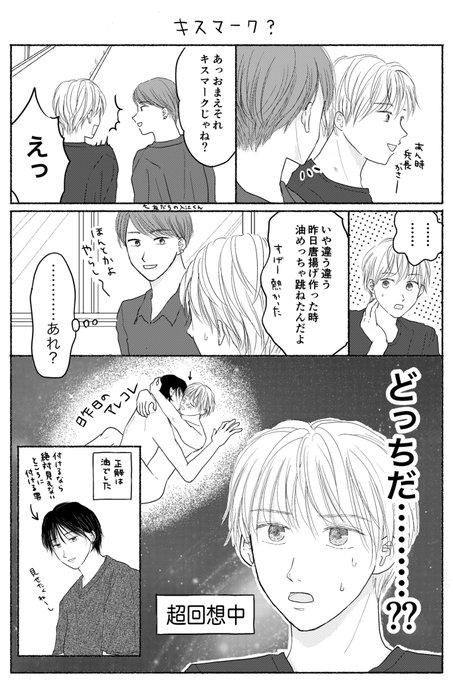 #実童と志葉 「キスマーク?」 同人誌に載せていたおまけ漫画です👄 #創作BL
