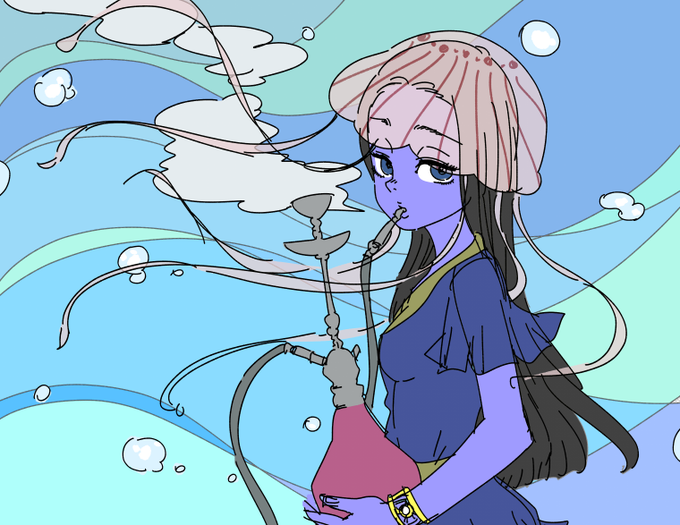 クラゲの頭はもうちょっと色変える。彩度変える。