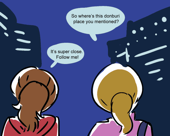 You order your usual donburi order, and Akane orders soboro gohan and a beer. You forgot she’s old enough to drink now. You’ve both changed so much since you first met.