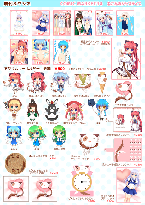 冬コミのおしながきです!ごちうさの新刊セットとかチノのフードブランケットとかティッピー×ぱんにゃとか紗凪タペストリーとかあります!3日目 東ハ-36B ねこみみジャスティスでお待ちしております!!よろしくお願いします。 #C89