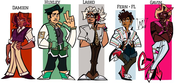 #characterdesign is apparently trending so here's every #RedactedASMR group design I've done thus far