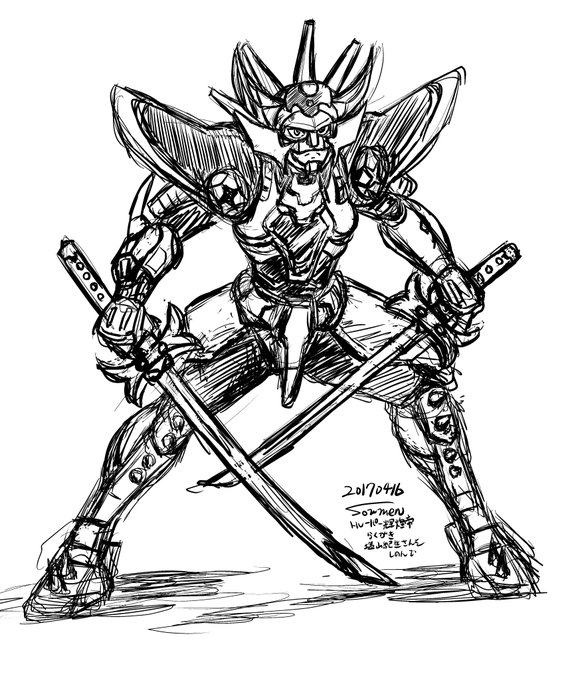 落書きの輝煌帝ペン入れして色塗ってみた #鎧伝サムライトルーパー #真田遼