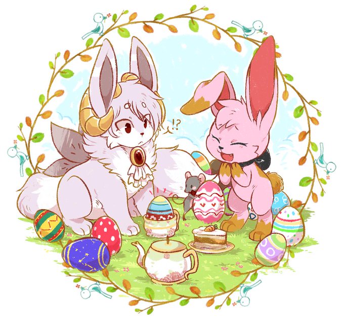 🐰💐 Happy Easter from Mr. Tiaa and @Lohlite !!~ 🐣