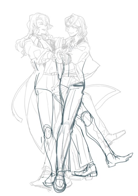 最初もっとフォークダンスだったんですけど(左)心の中の団長が「パークンはフォークダンスしてても社交ダンスになると思います没です」となりまして(右)