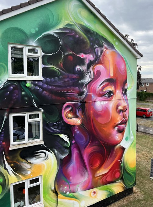 Final pics of my portrait of @nylahabitimojones for @cheltenhampaintfestival with @molotowheadquarters 📸 @StreetArtAtlas
