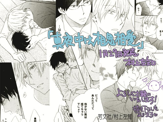 あとこちらは1月29日発売のコミックス「真夜中は相思相愛」のカバー色校です♡ヒモ大学生×真面目リーマンです(^o^)/