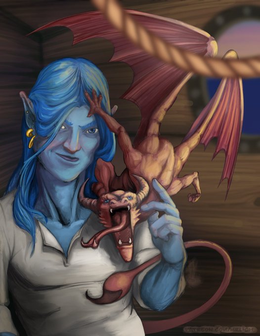 @Warlockdnd A few different versions of the same character. He’s a blue half elf that used to be a blue dragon. He’s a sorcerer and a rogue. He likes to take chances - especially if there’s a worthwhile reward on the other side of that risk. Name’s Dominir, or ‘Dom’ to his friends. Art by me