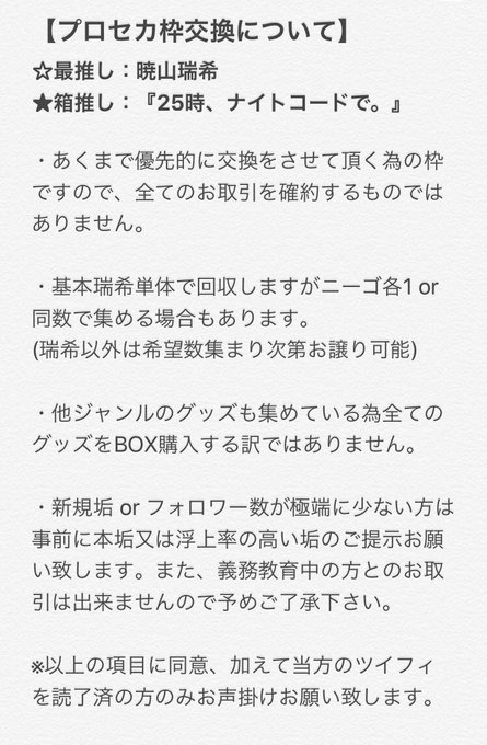 【緩募/交換】プロジェクトセカイ プロセカ グッズ 固定枠 譲:1枚目参照 求:瑞希 グッズ化決まりましたので固定ゆるーく募集します(頭身絵柄缶を中心に購入予定) ※希望枠が被った場合は相互様 or 条件の良い方を優先させて頂きます 2枚目とツイフィお読みになった上でお声掛け下さい🙇♀️