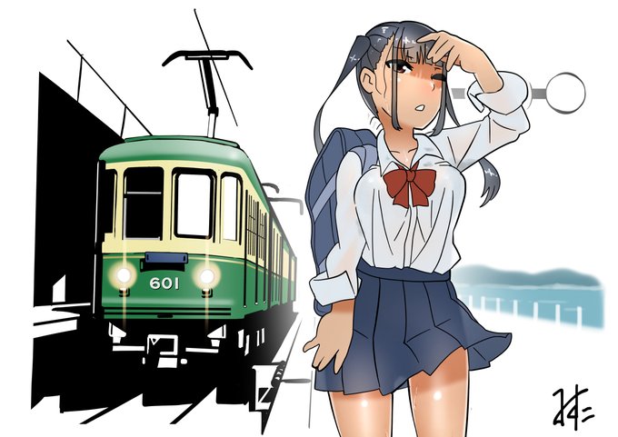 見ていると色々と不安になる江ノ電とこんがりツインテちゃん