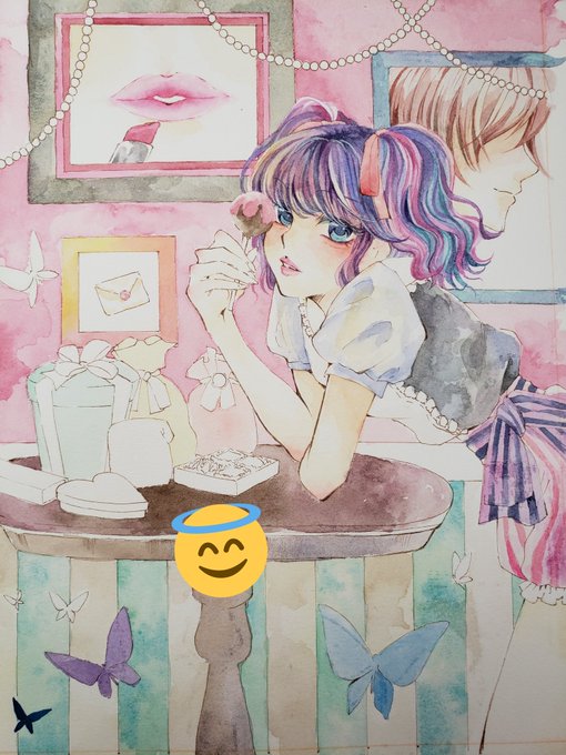 風邪ひきがものすごくひどいので色も思ったように出ないのとetc… 諦めました😇 また次のやつにとりかかります😇 バレンタイン終了🍫(笑) #透明水彩 #イラスト