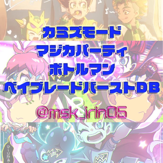 ホビアニクロスオーバー集1 #ベイブレードバースト #マジカパーティ #カミズモード #ボトルマン #クロスオーバー #ショタ #少年 #コロコロ https://t.co/O4wb0YtDcI