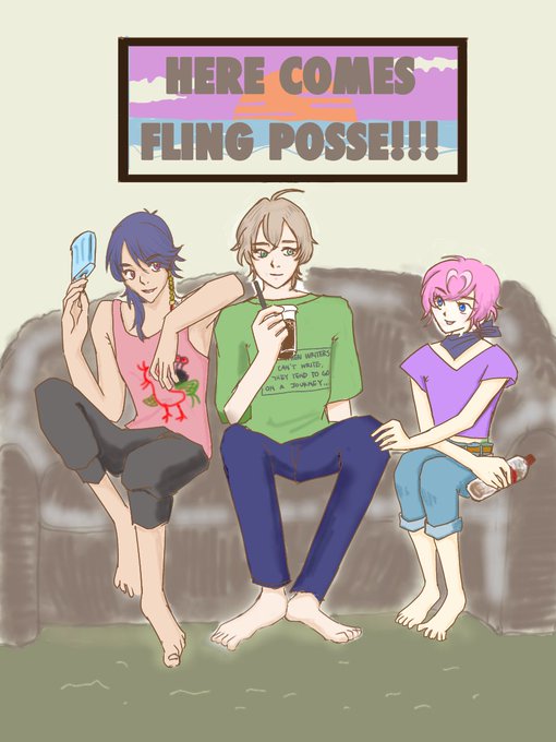 お仕事調整ミスってHangoutの曲中で休息できなかったフリングポッセさんがようやくチルできたところを描きました