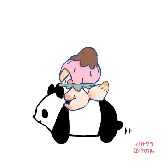歩こう、歩こう #イラスト #絵 #絵描き #癒し #かわいい #パンダ #いちご #癒される #メーとスズメの友達